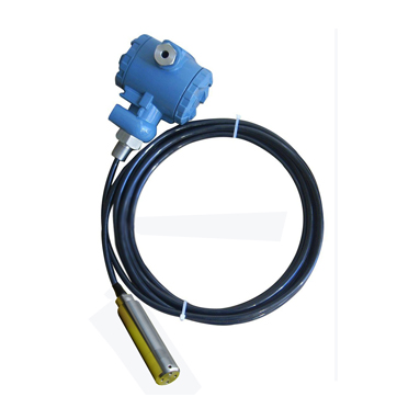 這種兩線制投入式液位計由一個內置毛細軟管的特殊導氣電纜、一個抗壓接頭和一個探頭組成。投入式液位計的探頭構造是一個不銹鋼筒芯,底部帶有膜片,并由一個帶孔的塑料外殼罩住。液位測量實際上就是在測探頭上的液體靜壓與實際大氣壓之差,然后再由陶瓷傳感器(附著在不銹鋼薄膜上)和電子元件將該壓差轉換成4~20mA輸出信號。