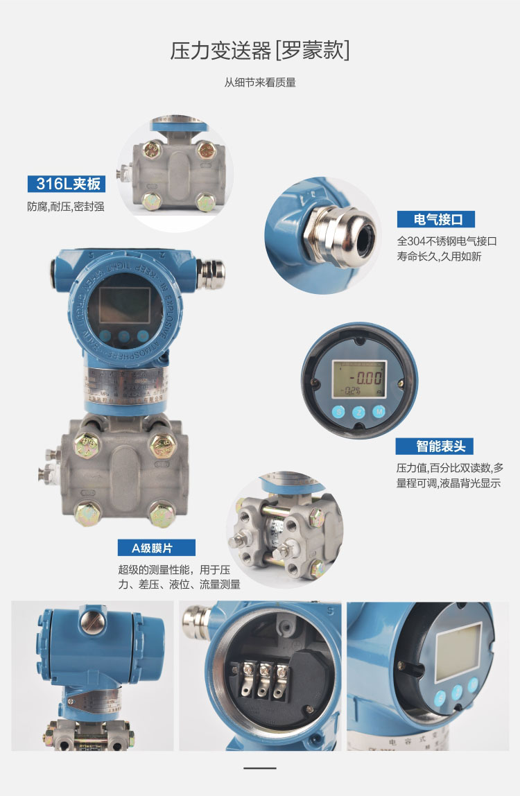 5、LED、LCD、指針三種指示表頭,現場讀數十分方便。可用于測量粘稠、結晶和腐蝕性介質;