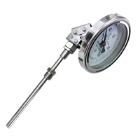 WSS系列雙金屬溫度計其保護管、節頭、鎖緊螺栓等均采用1Cr18Ni9Ti材料,表殼采用鋁板拉伸成型經切削加工表面黑色電泳處理,表蓋與表盒采用環型雙層橡膠圈螺紋密封鎖緊結構,故儀表整體防水防腐性能良好,徑向型儀表采用彎管型結構,外型新穎、輕巧、美觀與眾不同。雙金屬溫度計是用于測量中,低溫的現場檢測儀表,可用來直接測量液化和氣體的溫度。與玻璃水銀溫度計相比具有無***害、易讀數、牢固耐用等優點。